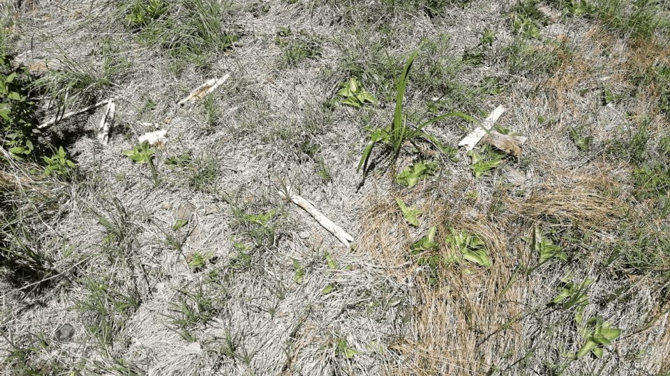 Agentes de Seguridad Pública en coordinación con las autoridades del municipio vecino se trasladaron al lugar de los hechos para confirmar el hallazgo de restos humanos. En la zona se localizaron también retazos de prendas de vestir y un bolso.