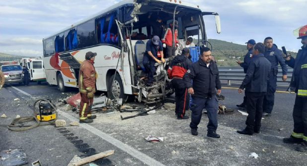 ZEMPOALA.- Un autobús de servicio turístico se impactó esta mañana contra un camión de carga pesada sobre la carretera México-Tulancingo, a la altura de Acelotla, perteneciente a Zempoala, lo que dejó varios lesionados.