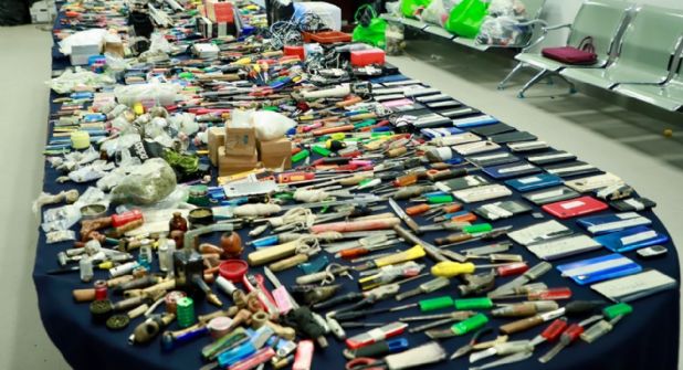 - Mil 103 objetos punzocortantes como puntas, tijeras, navajas, cúter, cuchillos, etcétera.