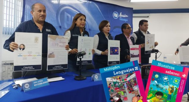 En conferencia de prensa, en la que también participó Marco Antonio Moreno Alfaro, representante de la Unión Nacional de Padres de Familia capítulo Hidalgo, así como Jorge Alfredo Moctezuma Aranda, consejero estatal del blanquiazul, señalaron que es necesario detener la distribución de los libros de texto.