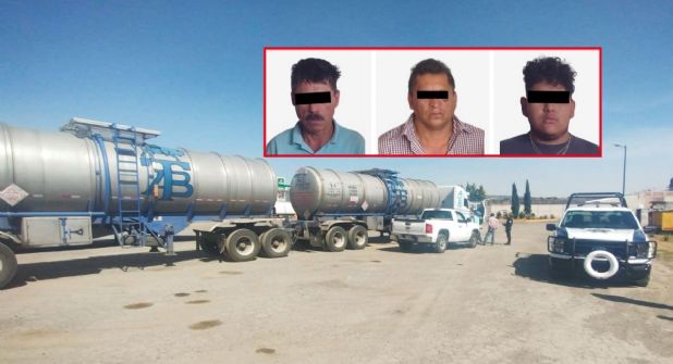 Los agentes ubicaron a tres sujetos identificados con las iniciales F. J. M. H., B. A. I. y A. H. R, quienes extraían combustible de un tractocamión para repartirlo en diversos contenedores, y tras no comprobar la procedencia legal del energético, quedaron bajo arresto.