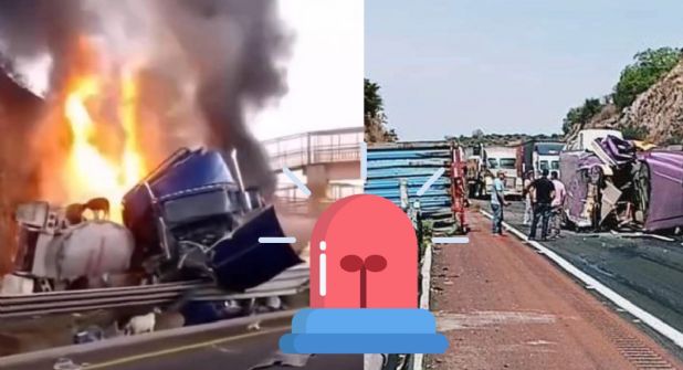 Uno de los accidentes de esta mañana ocurrió en el tramo Atlacomulco-Acambay, Estado de México, a la altura del paraje San Pedro de los Metates. El choque se produjo entre un tráiler y una pipa que transportaba alcohol ocasionando las unidades se incendiaran. El incidente alertó a los números de emergencia y generó la movilización de los cuerpos de rescate al sitio.