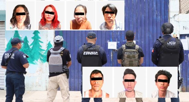 Durante la inspección, la policía realizó la detención de 3 mujeres identificadas con los nombres de iniciales J. L. V. V., N. H. G. y R. C. S., así como 4 hombres de iniciales G. G. H., H. D. M. H., G. G. G. y R. C. H, alias “El carpintero”, a quienes aseguraron 150 dosis de marihuana, 480 dosis de droga sintética tipo cristal, 4 cápsulas de “perico” y una báscula de precisión.