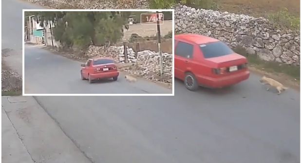 Al parecer, el acto llevaba varios minutos, pues el ejemplar ya estaba cansado y se apreció que hasta trataba de ponerse firme para no alcanzar más, pero no tenía éxito debido a la diferencia de fuerzas con su cuerpo y el motor, ante lo cual solo se lastimaba sus patas y así siguió hasta perderse de la cámara.