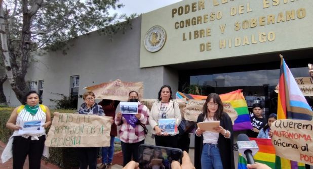 El documento entregado a la Oficialía de Partes del Poder Legislativo estatal fue acompañado de una manifestación en el exterior del Congreso con las consignas "Queremos una CDHEH Autónoma, no una oficina al servicio del poder", "Alto a la represión de la protesta" y "Migrar no es un chiste".