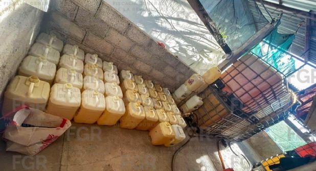 Durante la diligencia, realizada bajo el mando del fiscal federal y con la participación de elementos de la Policía Federal Ministerial y del Centro Federal Pericial Forense, ambos de la Agencia de Investigación Criminal (AIC), fueron asegurados aproximadamente 15 mil litros de hidrocarburo, 116 contenedores de distintas capacidades y un vehículo presuntamente relacionado con la actividad ilícita.