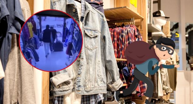 Son dos sujetos con cubrebocas, uno con vestimenta de chaleco negro y camisa azul con pantalón beige, quien se encarga de desenfundar el arma que trae escondida en la cintura. Con esta amenaza a la empleada para que entregue el dinero, mientras el segundo hombre, con pantalón de mezclilla, tenis en color blanco, playera negra y gorra del mismo color comienza a empacar la mercancía, pantalones y playeras dentro de una bolsa de plástico negra.
