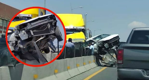 MINERAL DE LA REFORMA.- Un aparatoso accidente se registró este viernes 31 de marzo sobre la carretera estatal Pachuca-Ciudad Sahagún, en el tramo correspondiente al municipio Mineral de la Reforma donde un tráiler color amarillo arrolló a un auto particular y lo arrastró hasta impactar contra el muro de contención donde quedó prensado el auto. Derivado de este accidente se reportaron al menos tres personas lesionadas y otros dos autos dañados por alcance.