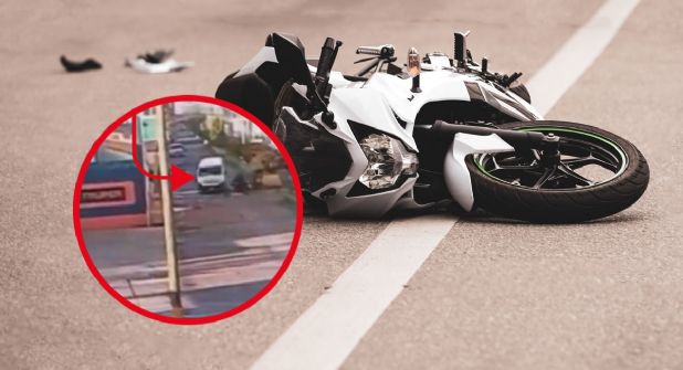 TULANCINGO.- En un video grabado por las cámaras de seguridad captaron el momento en que el conductor de una unidad de transporte público combi arrolla a su paso a un motociclista para después seguir con su camino y dejar atrás al motociclista que posteriormente se informó resultó con lesiones por el impacto.