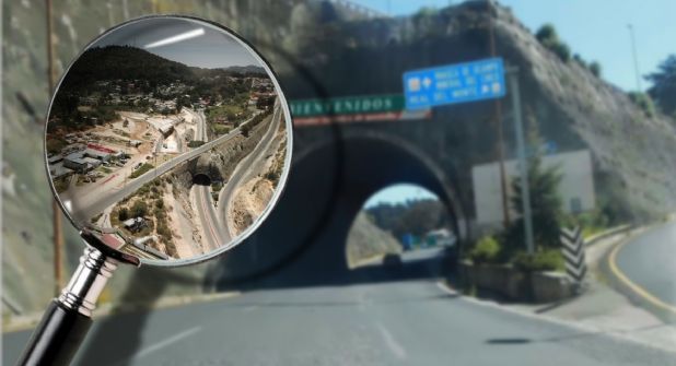 Se trata del túnel que desvía ya sea hasta Huasca o Real del Monte y donde han sido hechas voladuras en las montañas de los costados, es decir, explosiones para poder sacar tierra que estorba en los planos de los ingenieros para así poder hacer nuevos carriles, o bien, poner bases de concreto para puentes.