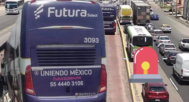 Mientras las largas filas de automóviles se registraban la tarde de este sábado 31 de agosto sobre la vía México-Pachuca en la zona sur de la capital hidalguense, el chofer de un autobús de pasajeros de la línea Futura, identificado con el número económico 3093, decidió como mejor opción transitar por el carril confinado del sistema de transporte masivo Tuzobús.