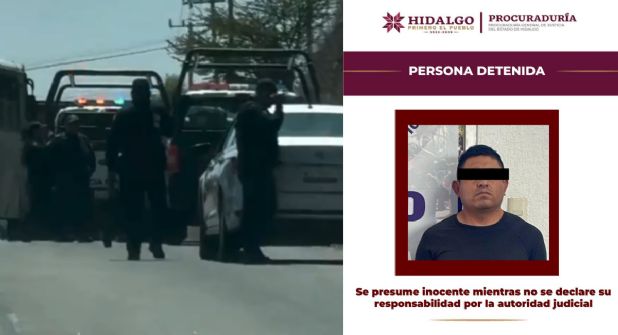 En un hecho distinto, personal de la Agencia de Investigación Criminal (AIC) de la Procuraduría General de Justicia del Estado de Hidalgo detuvo en Pachuca a un operador de transporte público individual identificado con las iniciales L.O.M.S., quien contaba con una orden de aprehensión vigente.