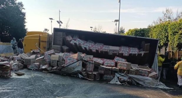 El accidente ocurrió en la Autopista México-Cuernavaca, a la altura del kilómetro 66 y de la curva conocida como La Pera, en dirección a Morelos. El tráiler cargado con varias toneladas de cartones de huevos volcó y a pesar de lo aparatoso, no hubo reportes de personas lesionadas.