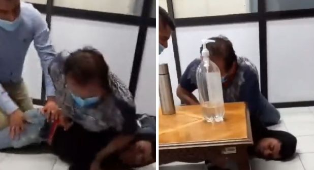 Los hechos fueron grabados por otro alumno que se hallaba en ese momento en el servicio médico y, al grabar con su teléfono, se aprecia a una mujer que trataba de impedir que grabara: