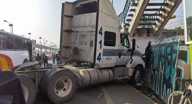 De acuerdo con testigos el camión de pasajeros fue impactado por la cabina del tráiler y luego esta con dos puestos semifijos que estaban en la base del puente peatonal en la bahía de ascenso y descenso de carriles centrales de la autopista México Querétaro, en el sentido a la CDMX, no se reportaron personas lesionadas.
