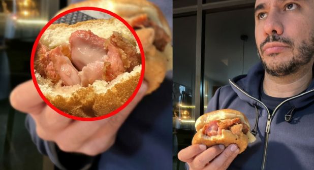 En las fotografías que Montiel compartió en sus redes sociales se aprecia que el influencer compró una hamburguesa con carne de pollo frito, la cual aparentemente contiene proteína cruda. Al fondo de las fotografías de observa el empaque rotulado de KFC.