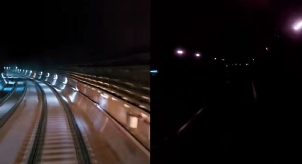 En el caso de la Línea Dorada, va en el tramo subterráneo que es el que reabrió y en el caso de la Línea Verde se observa que el convoy va en uno de los tramos que salen a la calle. En ambos casos se puede ver cuando el tren va a meterse al túnel y es entonces cuando se nota la diferencia en la iluminación de esta parte del recorrido.