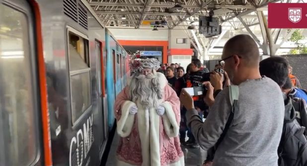 La alegría y magia de esta temporada navideña se respira cada vez más en calles y plazas de la Ciudad de México, incluyendo el Sistema de Transporte Colectivo Metro, donde Santa Claus se hizo presente para transmitir el espíritu navideño entre los usuarios de este medio de transporte por el que cada día transitan alrededor de 4 millones de personas.