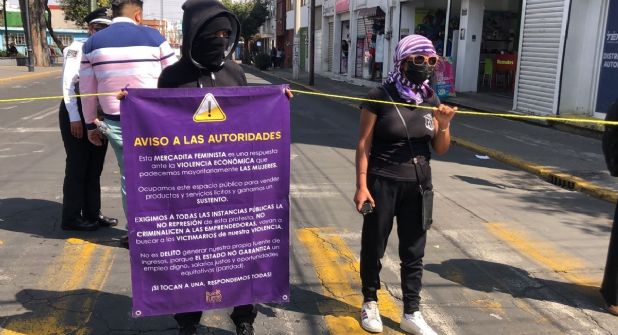 Tras aclarar que la Mercadita Feminista es una protesta pacífica contra la precariedad económica de las mujeres, colectivas feministas lograron que el Ayuntamiento de Toluca les permitiera instalarse en el Parque Simón Bolívar para hacer venta e intercambio de productos.