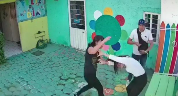 El anterior lunes Jesús “N” y Laura "N" ingresaron al plantel escolar referido acompañados de su hijo menor, un estudiante de ese colegio, de manera inmediata y apenas cruzaron palabras Laura tomó del pelo y golpeó a Brenda, la maestra y al parecer directoral del kínder. Luego la llevó a un aula, donde a decir de la profesora la amenazaron con una pistola, la hincaron y la hicieron que pidiera perdón al niño.