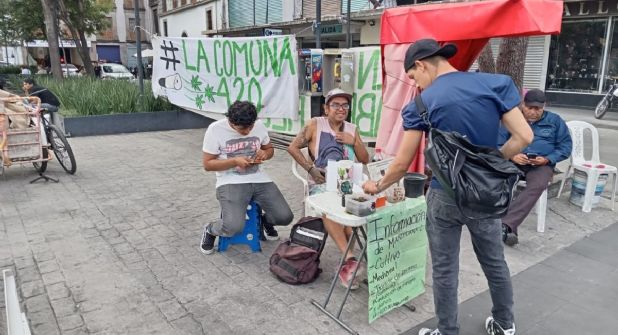 Luego de haber sido retirados de las inmediaciones del Senado de la República, en febrero de este año, y haberse instalado por un tiempo afuera de metro Hidalgo, algunos activistas decidieron tomar el espacio publico ubicado sobre avenida José María Pino Suárez y República del Salvador para consumir y dar información sobre la cannabis.