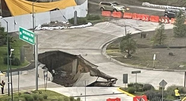 El socavón se abrió sobre el boulevard Bosque Real, en el punto que se encuentra debajo de la autopista La Venta-Lechería y es paso para la universidad Panamericana, por lo que esta institución educativa suspendió las clases presenciales a fin de que los alumnos no tenga necesidad de pasar por esta zona, ante el riesgo que representa.