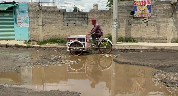 Pues como ve ahorita ya no es mucho, pero antes estaba más feo. Tuvimos que poner piedras para pasar la calle porque estaba bien inundada o en lo más alto de la banqueta de los vecinos, contesta.