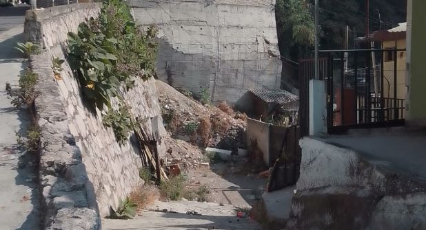 “si llega a colapsar las vibraciones podrían ocasionar el colapso de ese talud, mismo que por sí solo ya tiene un desplazamiento notorio, se ha acercado a mi casa que hace unos años se ubicada a tres metros, pero actualmente está a metro y medio”, explicó Jorge quien vive en la parte baja a unos 30 metros de la construcción.