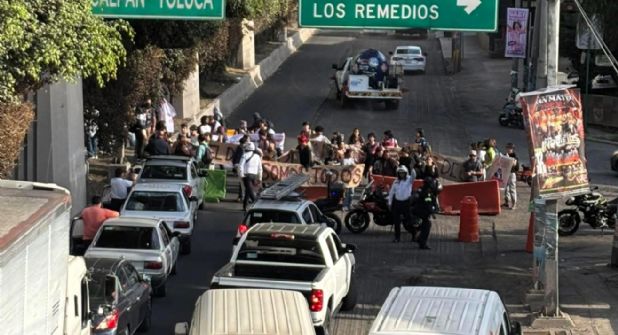 Un grupo de estudiantes de la Facultad de Estudios Superiores (FES) Acatlán, de la Universidad Nacional Autónoma de México (UNAM), realiza este miércoles un bloqueo en Periférico Norte, a la altura de la zona de Echegaray, en dirección a la Ciudad de México.