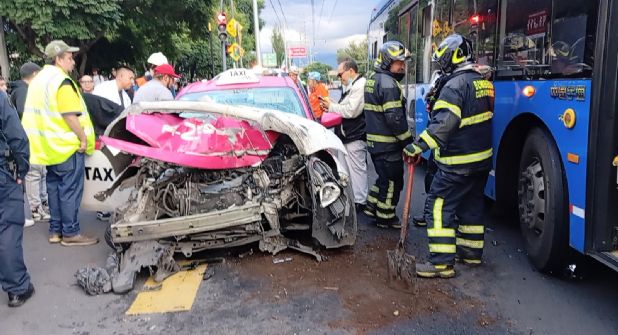 De acuerdo con los primeros reportes, el conductor del taxi habría cruzado el semáforo en rojo sin notar la cercanía de la unidad de transporte público.