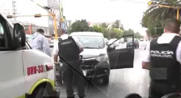 Servicios de emergencia atendieron el llamado de los transeúntes que presenciaron el momento en el que dos repartidores de comida que viajaban en una motoneta se pasaron el alto y fueron embestidos por un automóvil tipo camioneta.