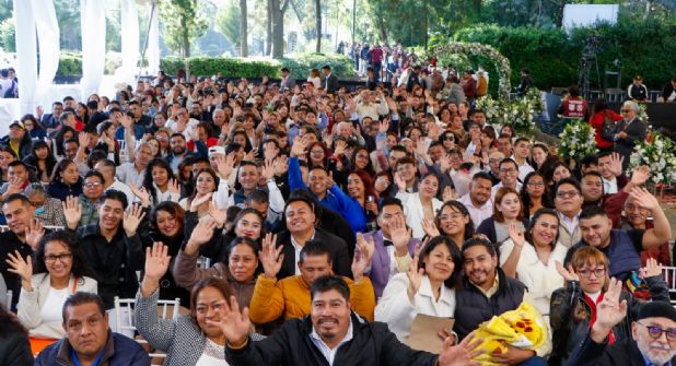 En la boda colectiva, celebrada en el Complejo Cultural Los Pinos, 500 parejas sellaron su amor este 14 de febrero, Día del Amor y la Amistad.