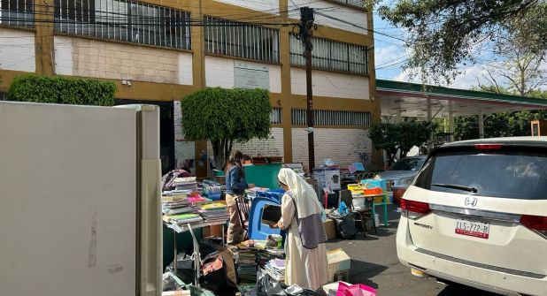 Sobre la calle Lago Argentina, libros, juguetes, lockers y demás material escolar se encontraban regados entre basura. Al lugar llegaron más padres a tratar de recuperar los útiles de sus menores.