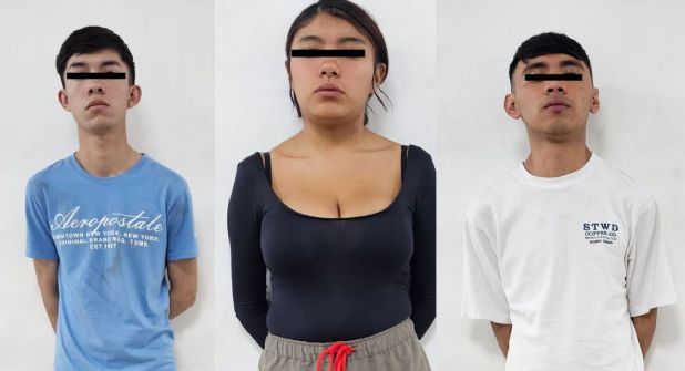 Los detenidos, dos jóvenes de 19 años, uno de 25 y una mujer de 18, fueron presentados ante el Ministerio Público junto con los objetos asegurados para determinar su situación jurídica.