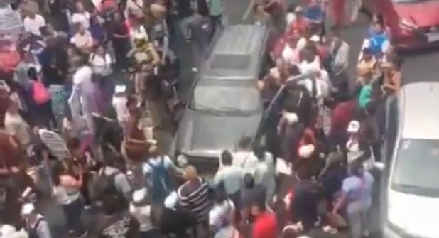 En redes sociales circularon videos que muestran el momento en que los manifestantes rodean y retienen al conductor del vehículo involucrado.