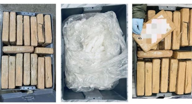La primera intervención se realizó en un inmueble de la calle Cerrada de Colibrí, de la colonia Los Cipreses, en la alcaldía Tlalpan, donde los efectivos aseguraron 20 kilogramos de metanfetamina y 30 tabiques forrados con cinta canela con cocaína.