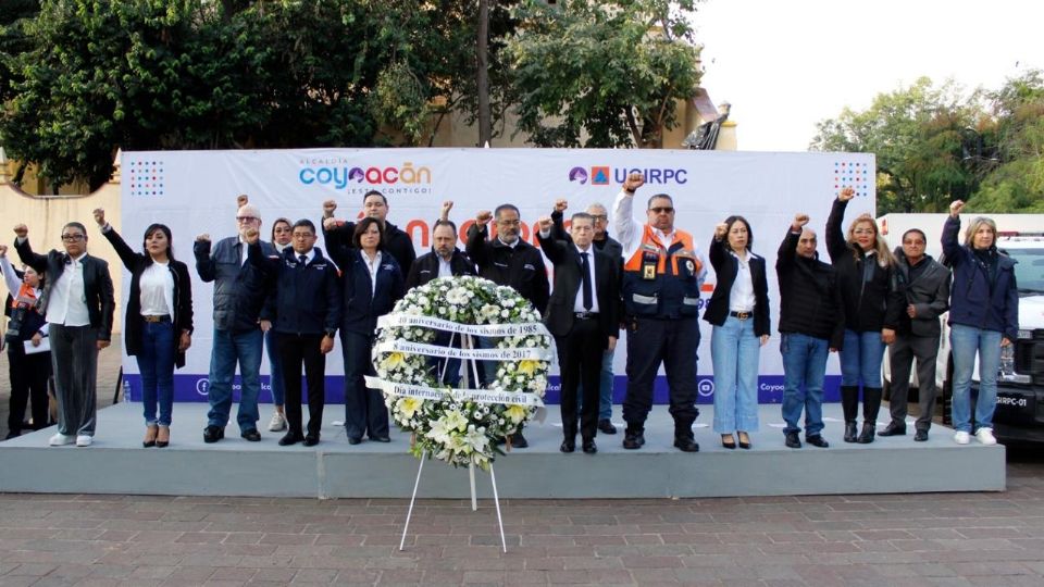 Acompañado por personal de estructura, concejalas y concejales, Gutiérrez Aguilar encabezó la ceremonia cívica en el centro de Coyoacán, donde se depositó una ofrenda floral, se izó la bandera a media asta y se guardó un minuto de silencio con el puño derecho en alto, en memoria de quienes perdieron la vida en los sismos de 1985 y 2017.