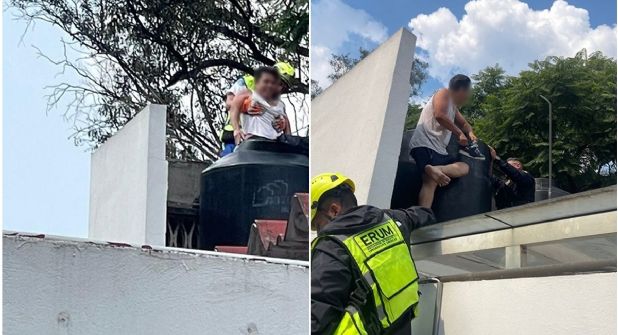 Oficiales sectoriales y paramédicos del Escuadrón de Rescate y Urgencias Médicas (ERUM) de la Secretaría de Seguridad Ciudadana (SSC) de la Ciudad de México, auxiliaron a un hombre de 46 años que quedó atrapado dentro de un tinaco de agua potable en un domicilio particular.