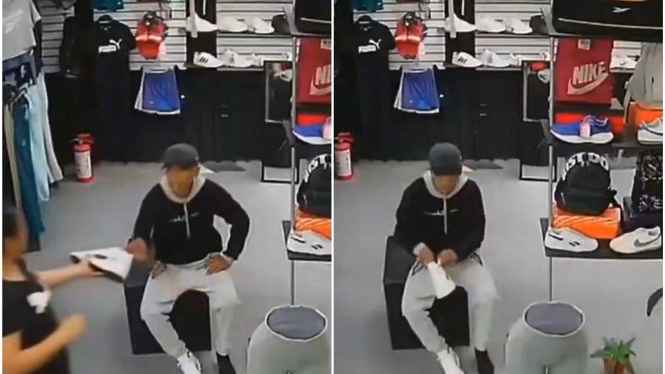 Sin dudarlo, aprovechó la distracción y abandonó el negocio con los tenis puestos, sin realizar el pago correspondiente.