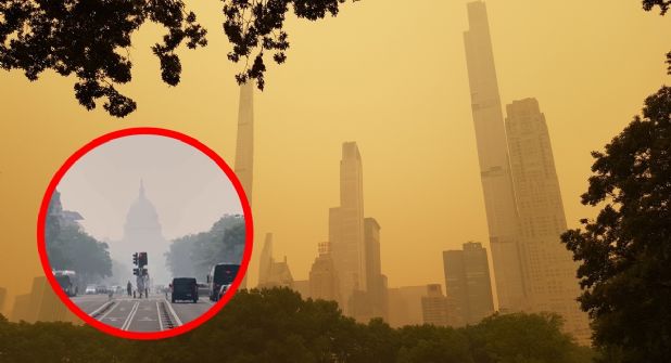 Tras las insólitas imágenes publicadas el miércoles de icónicos edificios como el Empire State Building rodeados por una nube de humo naranja, el Capitolio estadounidense en Washington amaneció este jueves sumido en la nube de humo.