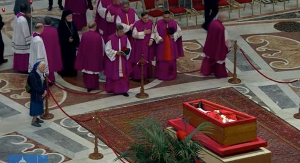 Aunque Sor Geneviève Jeanningros no formaba parte del estricto protocolo, que solo permitía el acceso al ataúd a cardenales y obispos, la monja rompió con el orden establecido para rendir su último tributo al papa.