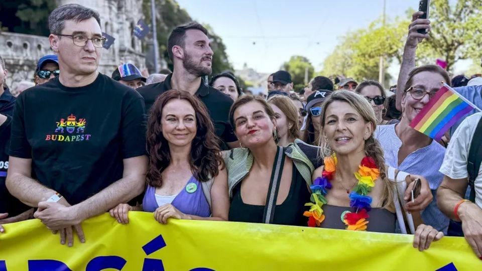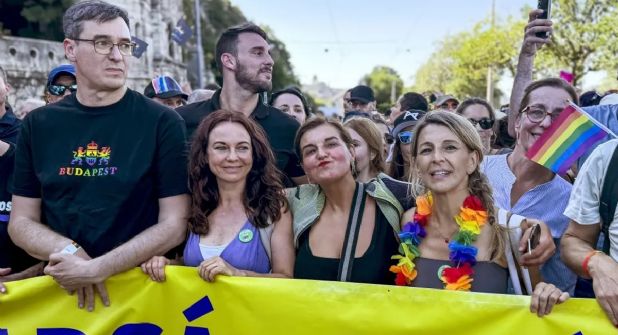 A la cabeza de la manifestación, con el lema "La libertad y el amor no pueden ser prohibidos", estaba el alcalde de Budapest, el ecologista Gergely Karácsony, acompañado por la vicepresidenta segunda del gobierno de España, Yolanda Díaz.