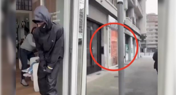 Un video que ya circula en redes sociales muestra cómo uno de los sujetos impide que una mujer cierre la puerta del lugar, mientras éste saca de entre sus ropas el artefacto explosivo, lo acciona y lo lanza al interior del establecimiento.