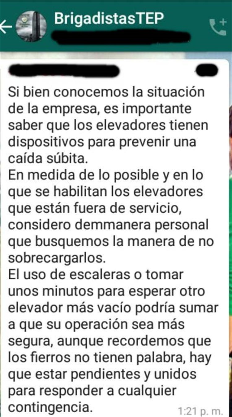 En un grupo de Whatsapp de brigadistas se señala que aún no hay confirmación de lesionados y la recomendación es usar las escaleras.