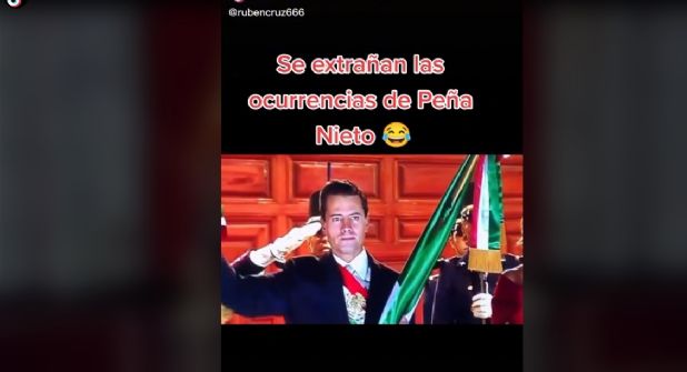 En Tiktok se viralizó un video de la cuenta @rubencruz666 que habla de Enrique Peña Nieto y un momento chusco durante la celebración del Grito de Independencia. “Se extrañan las ocurrencias de Peña Nieto” en el que se le ve tocar la campana y ondear la bandera. De pronto se ve que quiere guardar y alguien del Estado Mayor Presidencial le recuerda que debe seguir con el ondeo de la bandera.