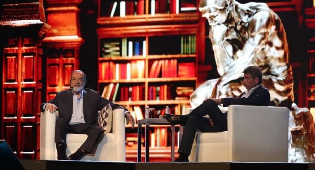 El presidente Honorario y Vitalicio de los Consejos de Administración de Grupo Carso participó a lado de su yerno en la que se dieron cita cerca de 10 mil becarios de la Fundación Telmex y donde el ingiero motivó a los jóvenes a seguir esforzándose y siempre vivir el presente de la mejor manera.