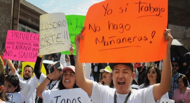 - ¿Cuál es el motivo de sus movilizaciones? -se le pregunta a Juan Alberto Prado Gómez, secretario General del Sindicato Nacional de Renovación al Servicio de los Trabajadores del Poder Judicial Federal.