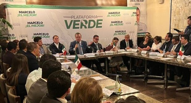 Marcelo Ebrard aspirante a la candidatura de su partido Movimiento Regeneración Nacional (morena) para la próxima elección presidencial de 2024, sostuvo una reunión privada la tarde de este marte 23 de mayo con los dirigentes estatales del Partido Verde Ecologista de México (PVEM), quienes apoyan su candidatura presidencial.