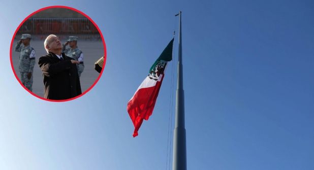 En punto de las 7:19 horas, el presidente López Obrador izó la bandera a media asta en la plancha del Zócalo.