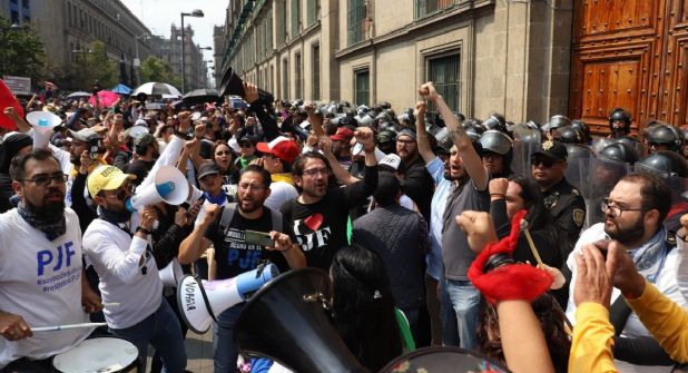 En cambio, en tanto se llevó a cabo el encuentro entre el empresariado de México y Estados Unidos con el gobierno federal, a las afueras de Palacio Nacional los trabajadores del Poder Judicial mantuvieron su protesta en defensa de sus espacios de trabajo, en defensa de un sistema que, si bien requiere un cambio -reconocen los mismos juristas- la manera que se estableció no es la correcta.